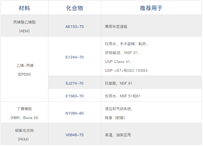 派克漢尼汾提供丁腈橡膠、Vamac®(AEM)、氯丁橡膠、乙烯-丙烯和碳氟化合物等多個材料系列的自潤滑化合物,供客戶選擇。