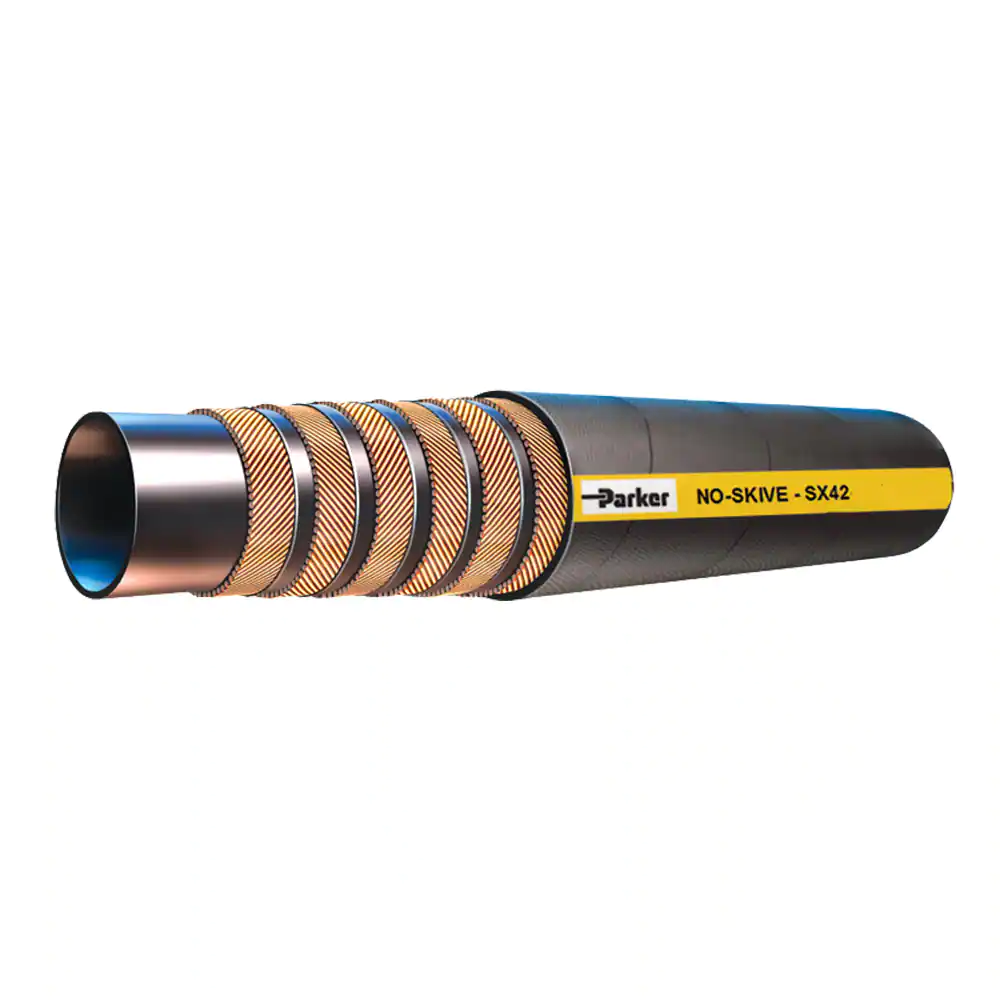 派克不剝膠螺旋液壓管 SX42 用于壓力不超過(guò)42.0 MPa通用高壓液壓的應(yīng)用。軟管適用接頭是 Parkrimp 不剝膠73和77系列。
